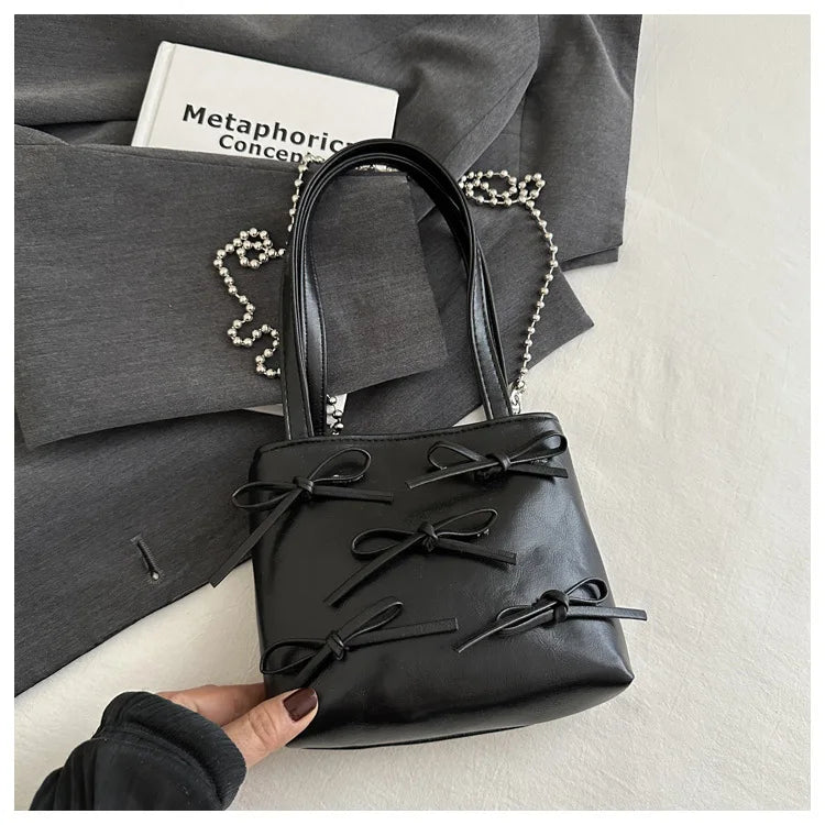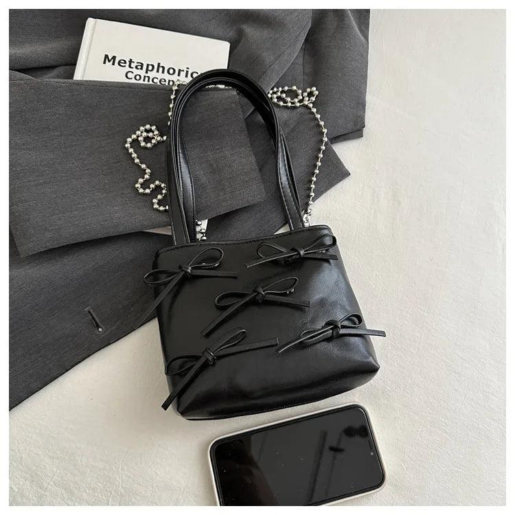 This bag strikes the perfect balance between playful and sophisticated. The bow details add personality without being too sweet, making it ideal for modern women who want their accessories to be both stylish and functional. The compact size is just right—not too small to be impractical, but sleek enough to keep you looking polished.