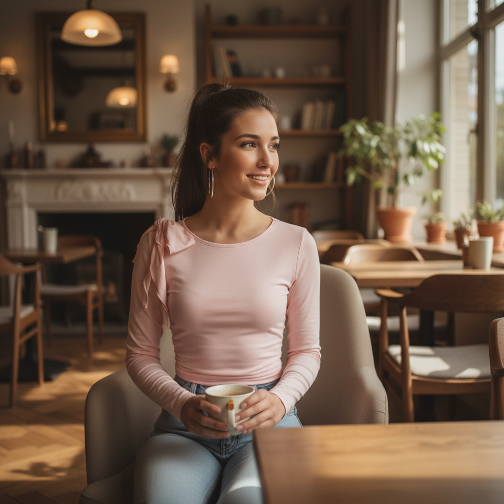 This top proves that small details make a big difference. The shoulder bow adds personality without being too sweet, making it perfect for women who love feminine touches but want to keep their style sophisticated and wearable. The fitted cut is flattering and modern.